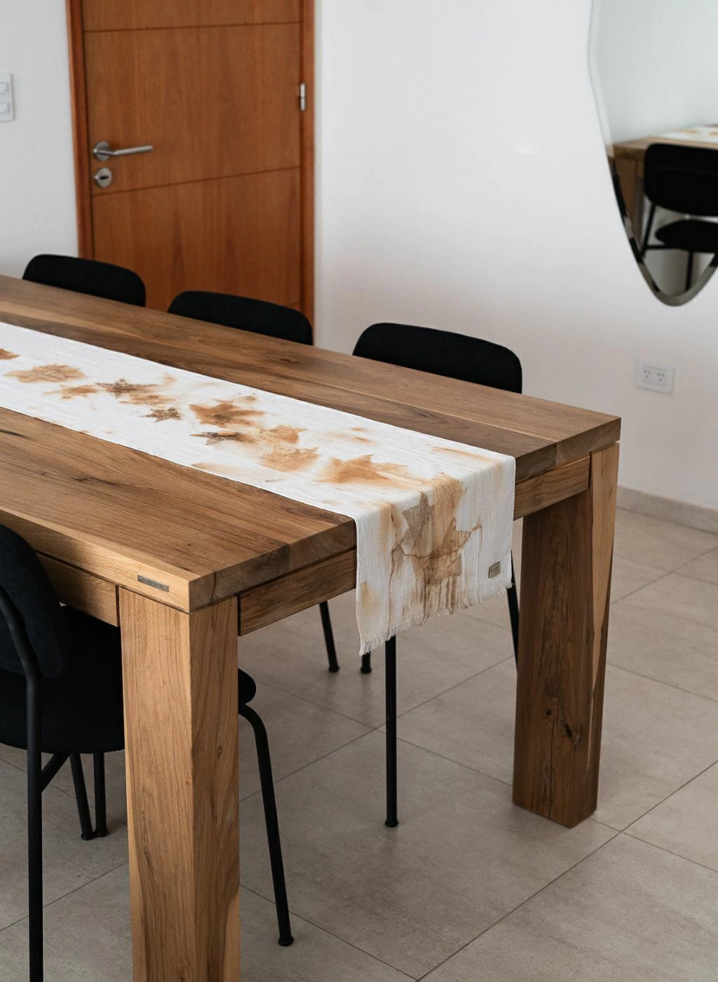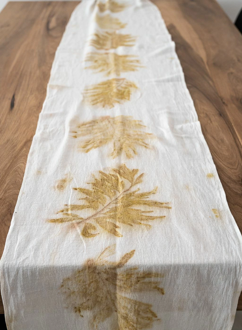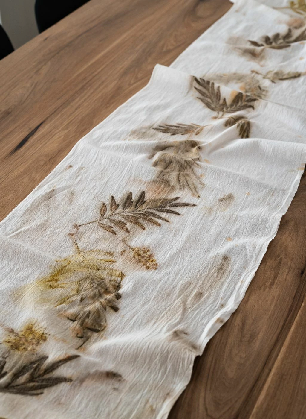 Descubre nuestros caminos de mesa artesanales, elaborados en gasa de algodón con un hermoso estampado botánico ecoprint. Estos caminos son ideales para realzar la decoración de tu hogar, aportando un toque natural y elegante.
